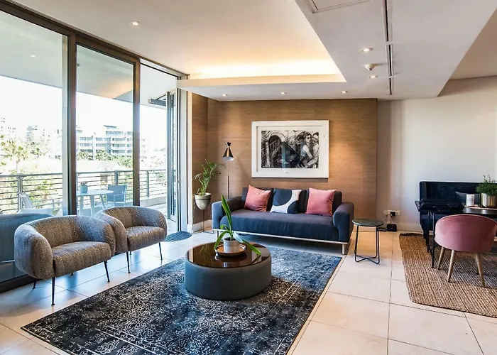 Das 85 m^2 große Elegant Waterfront Apartment With No Loadshedding Kapstadt im Stadtteil V&A Waterfront von Kapstadt bietet einen Blick auf die Berge und verfügt über ein Fitnesscenter. Veranstaltungsstätte Avenue Conference and Event Venue ist 14 Minuten zu Fuß von der Unterkunft entfernt, und Labia Cinema ist in rund 25 Gehminuten Entfernung von dem einladende Apartment.